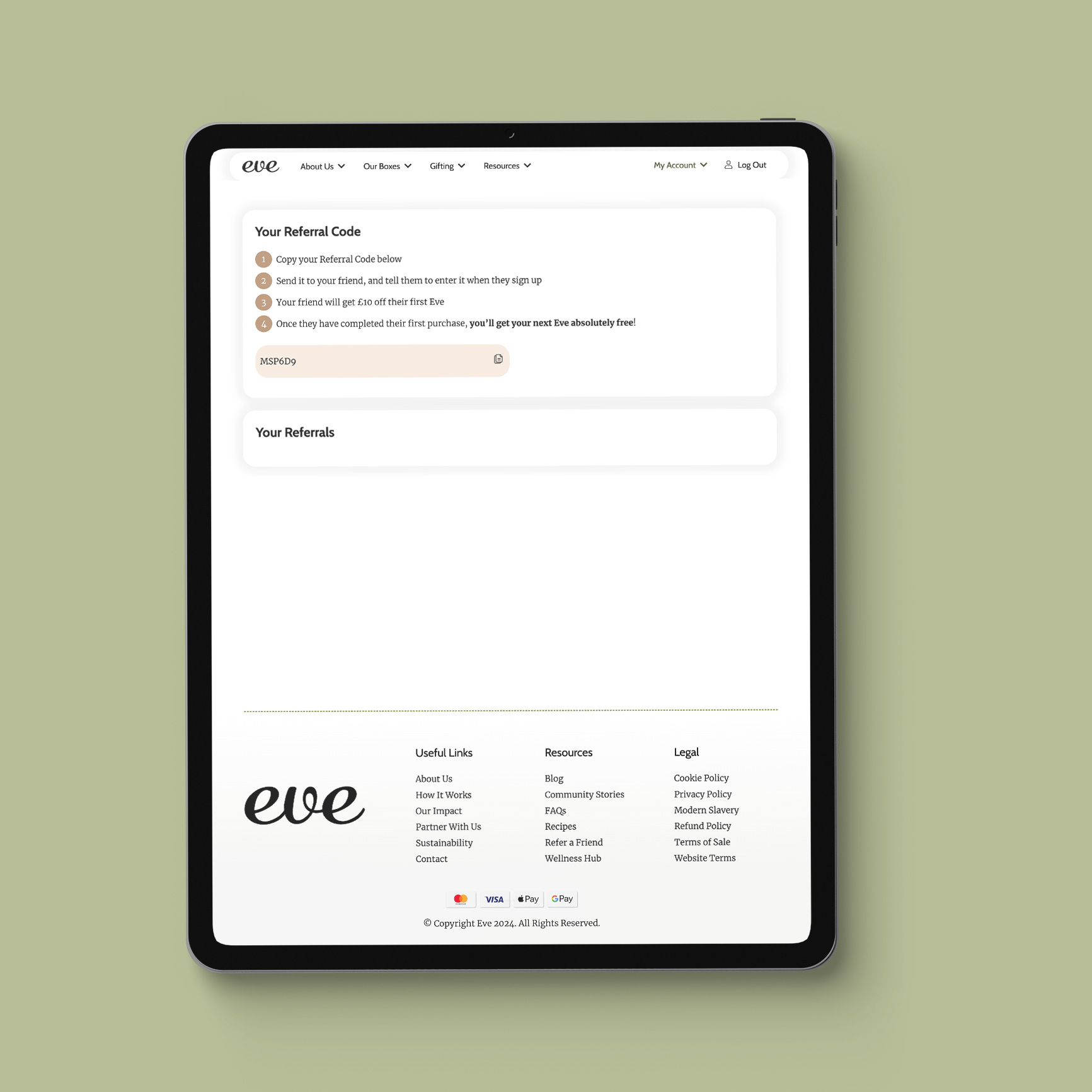 We implemented a seamless referral system, allowing users to invite friends to join Eve. This feature incentivised users with discounts on their subscriptions for each successful referral, boosting customer acquisition and retention.