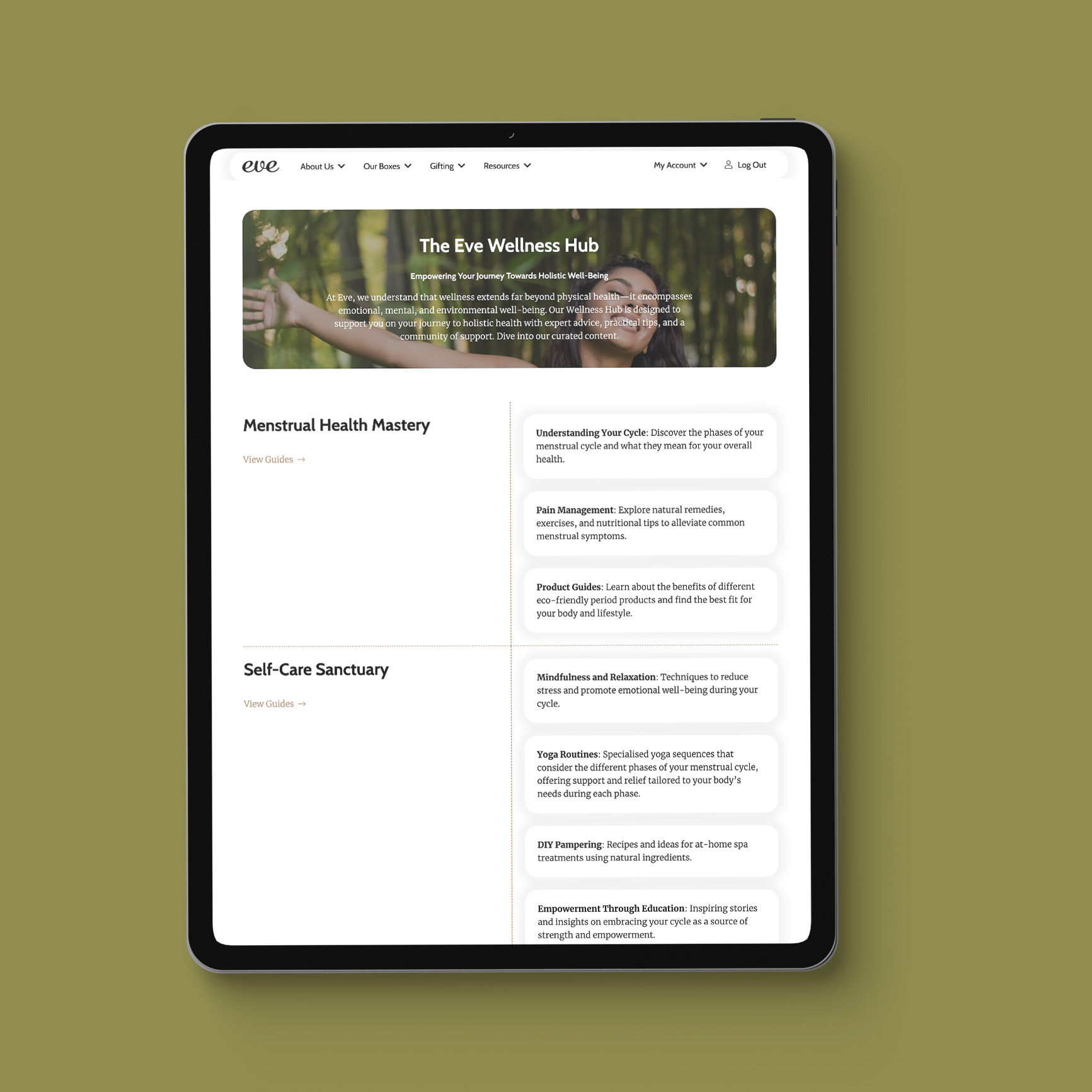 The Wellness Hub is a comprehensive member area containing guides across various categories. This resource hub empowers users with knowledge and tips to manage their menstrual health and overall well-being.