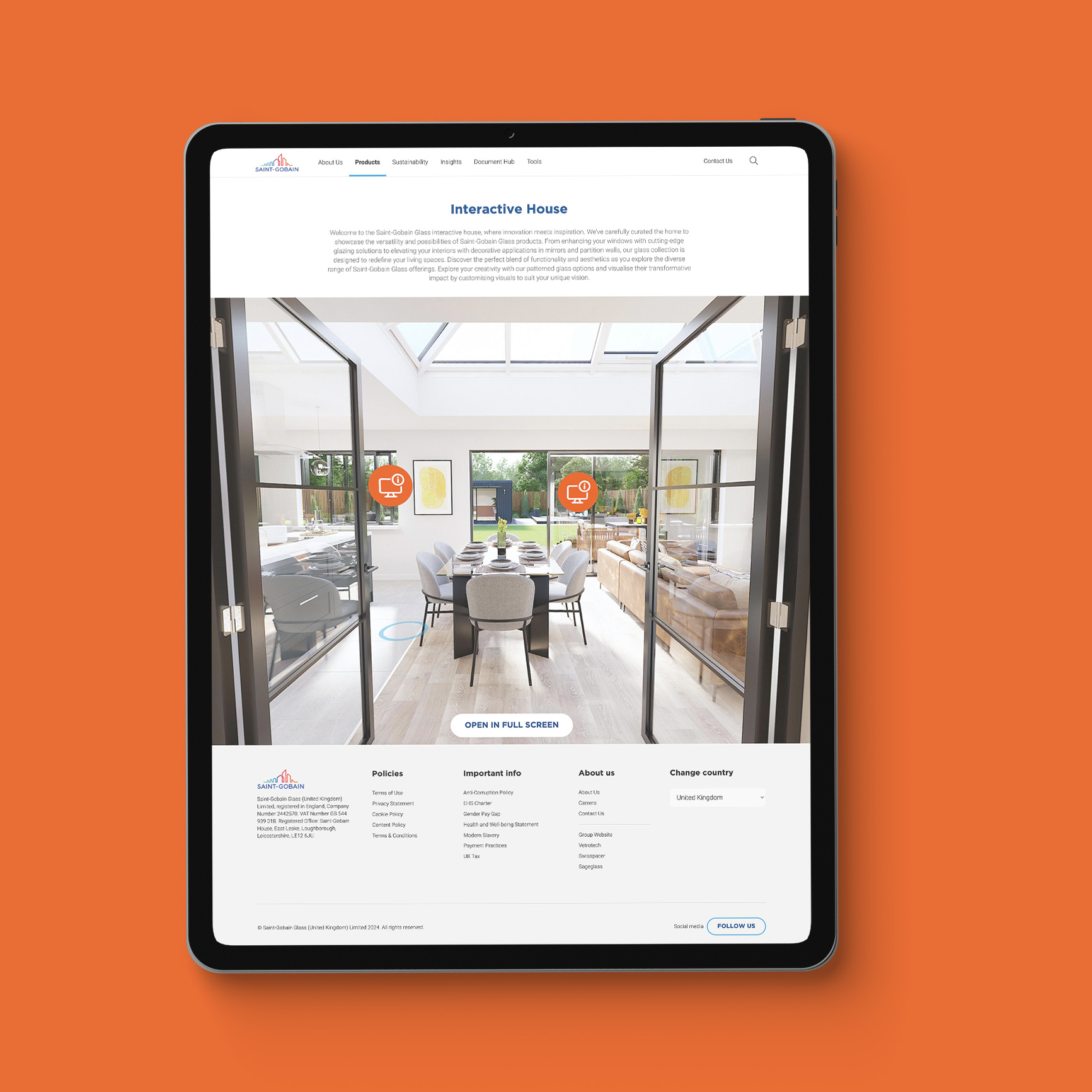 The Interactive House feature allows users to explore different glass solutions in a virtual environment. This tool helps users visualise the application of various glass products in residential settings, providing an immersive and educational experience.